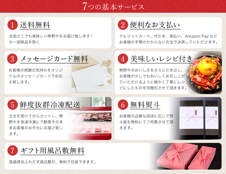 熊野牛の定義は、和歌山県内で飼育(12ケ月以上)された月齢24ケ月以上で、3等級以上の黒毛和種になりますが、ここから更に当社で厳選した牛肉だけを取り扱ってご提供させていただいております。