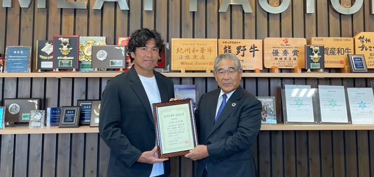 弊社の紀州和華牛を大絶賛いただき紀州和華牛の応援大使になっていただきました。