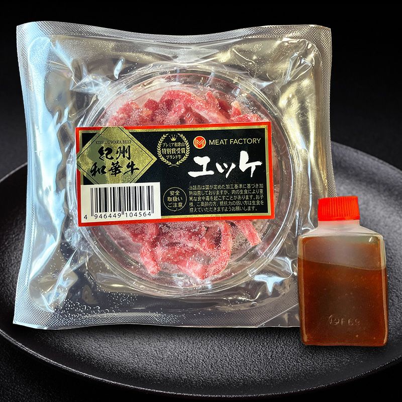 紀州和華牛の上質なモモ肉を使用し、工場自家製オリジナルのタレは、薄口しょうゆをベースに信州みそでコクを出し、ごま油でアクセントを出した<紀州和華牛ユッケ>を是非ご賞味下さい!